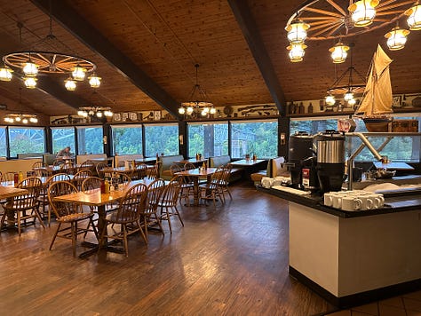 The next morning I gorge on the breakfast buffet and French toast. Great French toast. Afterwards, I wander around the massive hotel and learn about its history. The walls are adorned with wood carvings and paintings from a few well-known local artists of the early 1900s (e.g. C.S. Price). There is a small museum that includes an informative video. I come away inspired by New Deal America’s ambition and ability.
