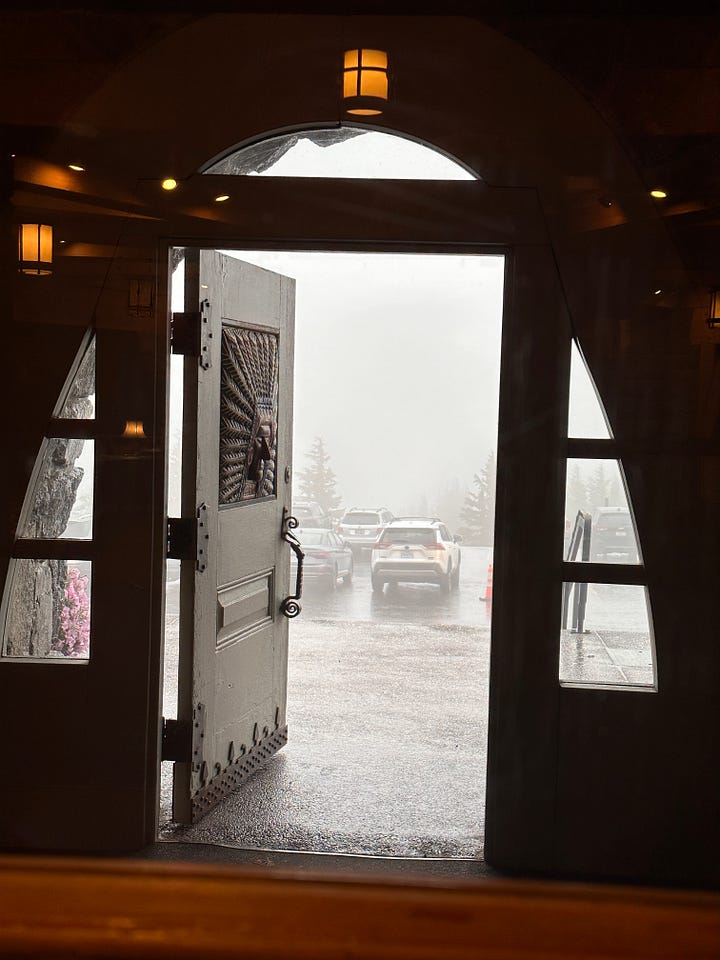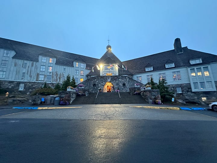 The excitement of getting to the Timberline Lodge keeps me going. The lodge had been featured in Stanley Kubrick’s The Shining as The Overlook Hotel. It was rumored to have a legendary breakfast buffet and an interesting history. The lodge was built using local lumber and stone by the Works Progress Administration in the 1930s.